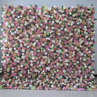 3D Roll Up Floral Wall 8*8 ft Flor de seda artificial Decoración de la boda Panel de pared Telón de fondo