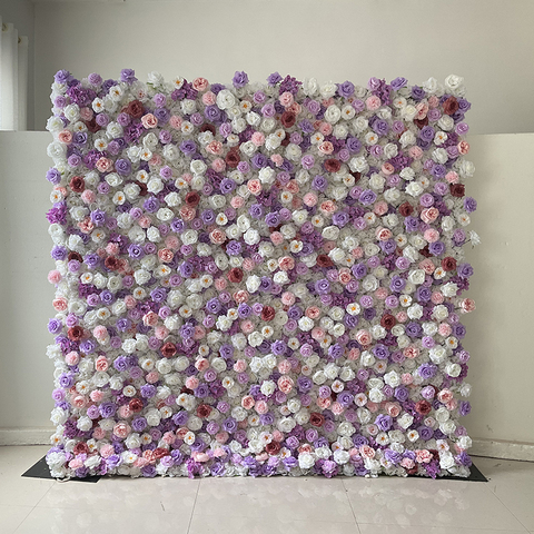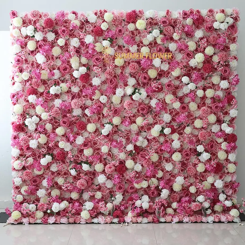 แผงดอกไม้ปลอมขนาด4*8ฟุต/8*8ฟุตทำจากผ้าไหมสำหรับงานแต่งงานแผงดอกไม้สีชมพูแบบม้วนติดผนัง