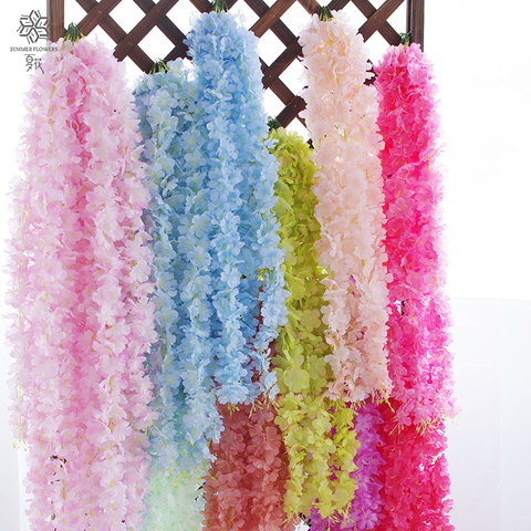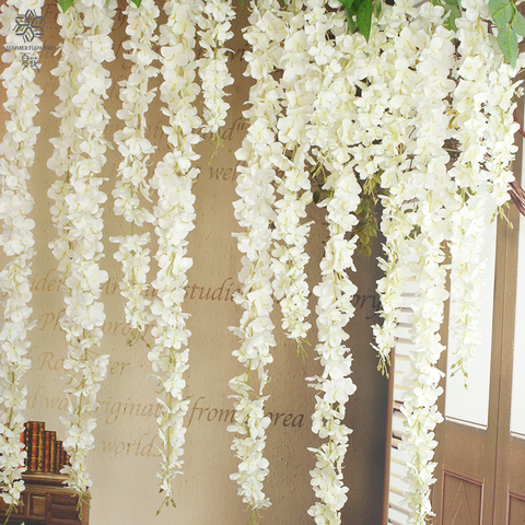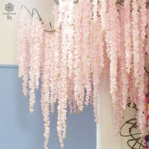 סיטונאי תלייה דקורטיבי חתונה קישוטי פרחים מלאכותיים מזויף ויסטריה גפן תלייה