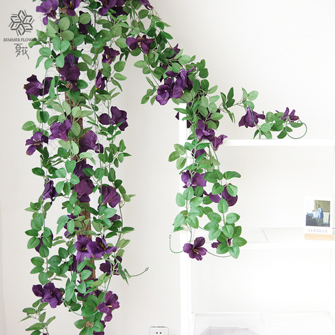 פרח ויסטריה מלאכותי פרחים עלי ראטן לקישוט גן חתונה