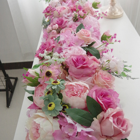 ดอกไม้ฤดูร้อนที่กำหนดเอง30เซนติเมตร * 100เซนติเมตรตกแต่งผ้าไหมดอกไม้วิ่งตารางโค้งดอกไม้ประดิษฐ์สำหรับงานแต่งงาน